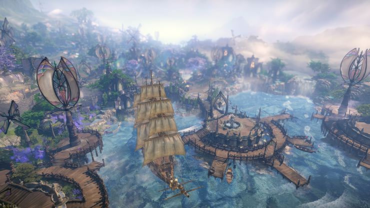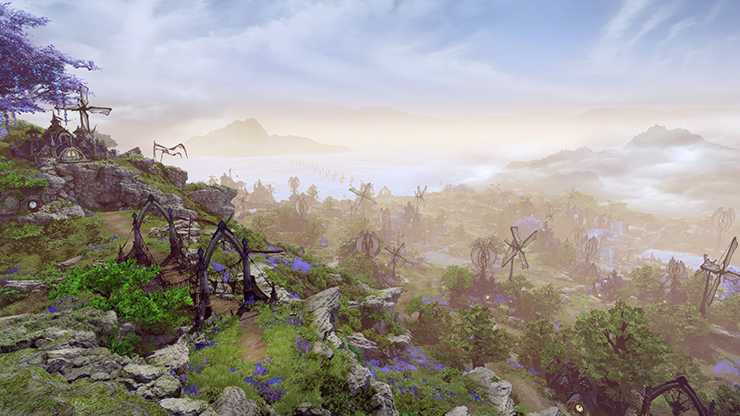The team at Smilegate RPG, the developers of Lost Ark, wanted Rimeria to have a mysterious air to it, leading players to feel they are venturing into an unknown continent. So in designing the new zone, they aimed to create a place that felt very different from the existing lands that players have seen. Visually, Rimeria is unique in regards to how large of a role nature plays in its identity, and several areas in the zone reflect this design. For instance, there’s Yan’s Path, where a small port called Port Fran is connected to the sea. It is a beautiful, lush land where purple Ursali flowers flutter in the cool breeze. Connected to Port Fran by a the massive Bridge of Illusion is Shae, a city built over Akasha Lake. Shae is known for its unique and beautiful architecture, and is the home of the Yoz Elders. Even though it is a lively city, it is decorated by nature throughout including trees, flowers, and Rimeria’s unique glass crafts. In Shae, nature is cherished and both humans and animals live together in harmony within the city. And beyond Shae lies Nukman Valley, where the legendary Narr’s Door is located. This is where Yoz warriors train to protect the Dawn of Rimeria, and the land is steeped in the history of those who have come before and fought back the Pitch Black Night.