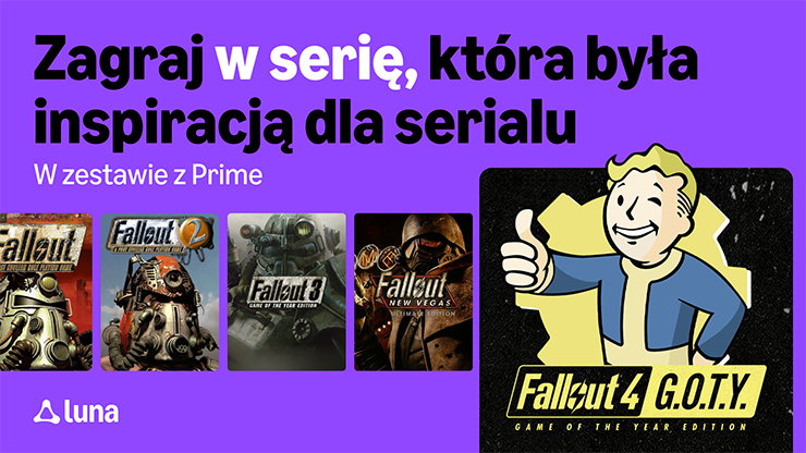 Drugi sezon nagrodzonego Emmy serialu Fallout Sezon drugi produkcji studia Kilter Films pojawi się 17 grudnia w usłudze Prime Video – to doskonały moment, by powrócić na Pustkowia i zanurzyć się ponownie w uniwersum Fallout . Z okazji długo wyczekiwanej premiery sezonu członkowie Prime mogą w tym miesiącu uzyskać dostęp do kilku postapokaliptycznych przygód dzięki zupełnie nowej usłudze Amazon Luna.
