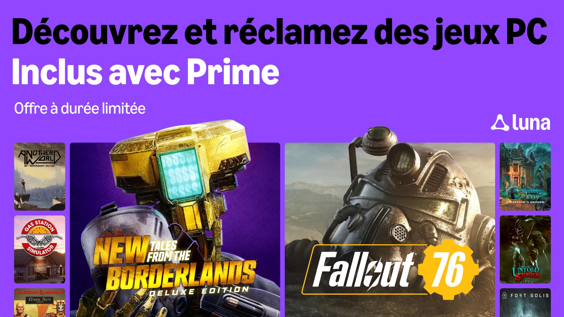 Consultez cette page pour découvrir la dernière sélection de jeux PC disponibles pour les membres Prime ! Et consultez cette FAQ pour en savoir plus sur le nouveau service Luna.