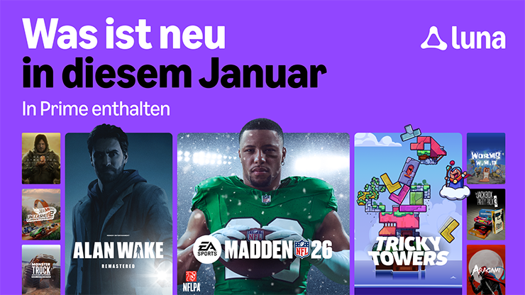 Erfahre alles über die Spiele des Monats und die aktuellsten Neuigkeiten zu Luna. Mit Luna erhältst du als Prime-Mitglied Zugriff auf eine stetig wachsende Bibliothek mit über 50 Spielen (überall dort, wo der Luna-Clouddienst verfügbar ist) sowie eine monatlich wechselnde Auswahl kostenloser PC-Spiele zum Herunterladen.